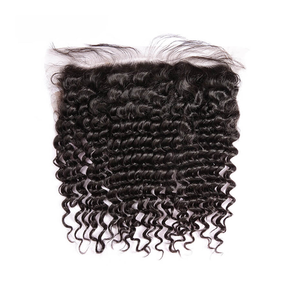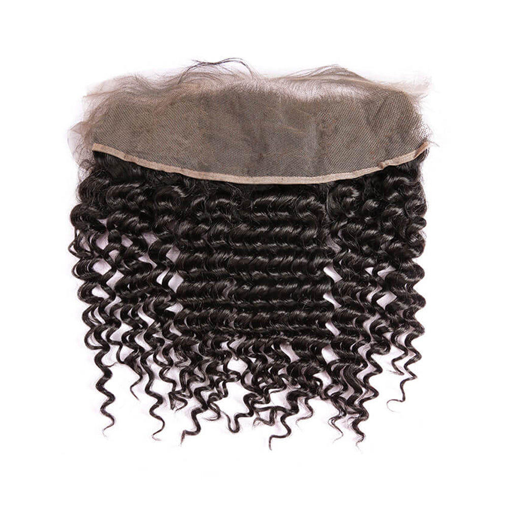 3 Bundle Deals With 13*4 Transparent Frontal Deep Curly Virgin Human Hair Natural Black
