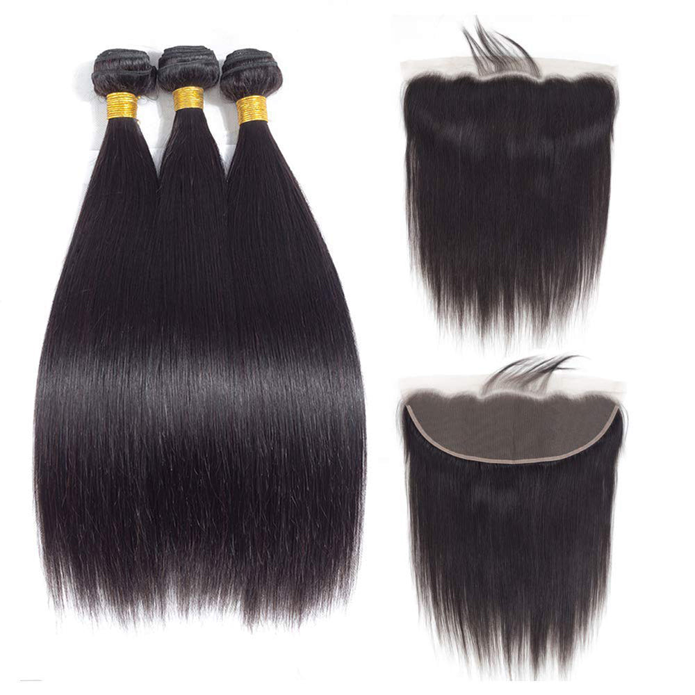 3 Bundle Deals With 13*4 Transparent Frontal Straight Virgin Human Hair Natural Black