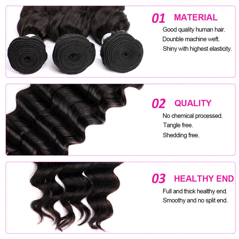 Loose Deep Curly Virgin Human Hair Natural Black Bundles (100 grams)